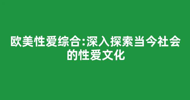 大家好,今天我来和大家聊一聊关于欧美性爱综合:深入探索当今社会的性爱文化的问题。在接下来的内容中,我会将我所了解的信息进行归纳整理,并与大家分享,让我们一起来看看吧。