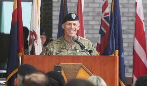 7月11日,美第8集团军司令托马斯⋅范达尔参加平泽基地司令部新大楼剪彩仪式