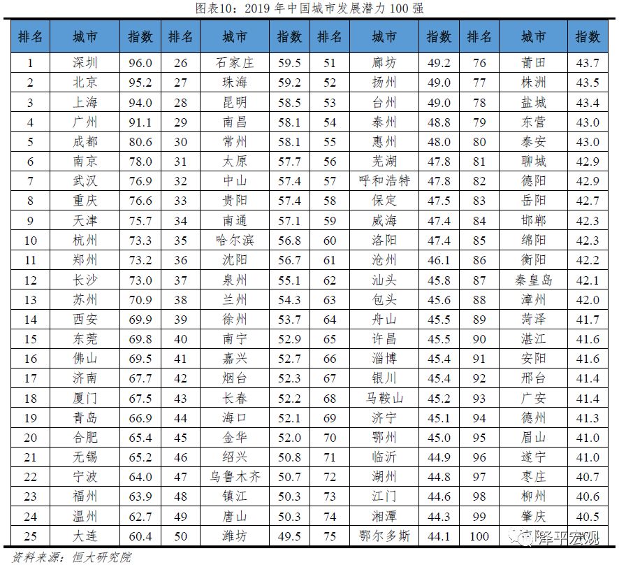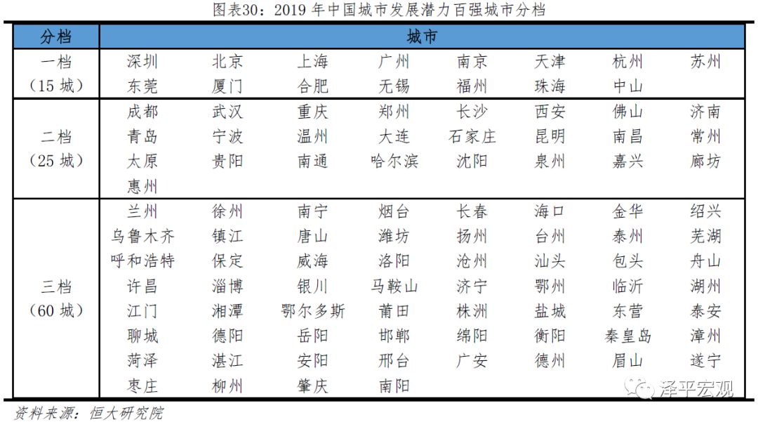 1)榜单概览:在基本面分析基础上,结合市场面情况将发展潜力100强划为3档,其中深北上广等15个城市为一档,成都、武汉等25城为二档,兰州、徐州等60城为三档。
