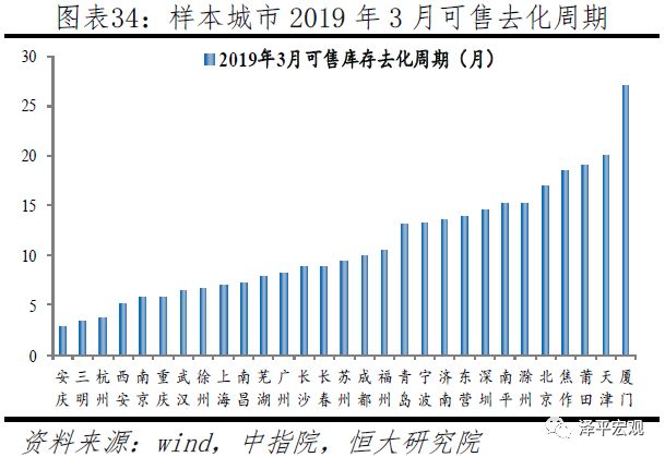 3)库存去化:西部地区、四线城市总体库存风险较高。从可售库存看,2019年1月一线、二线、三四线样本城市库存去化周期分别为11.7、10.5、11.4个月,三四线城市从2018年下半年以来有一定上升。从广义库存看,2017年西部地区、四线城市土地消化周期分别为2.5、2.1年。