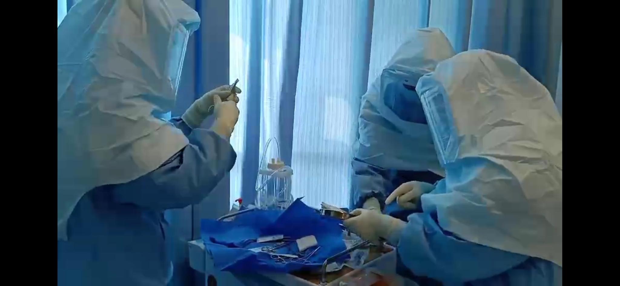 来到病房,确认患者的胸片无误,迅速换上隔离衣,赵大夫、包大夫早已等在病房里,护士弟弟妹妹们也已经准备好了胸腔闭式引流需要的用物。来到床旁,患者的血氧饱和度只有75%,操作刻不容缓。