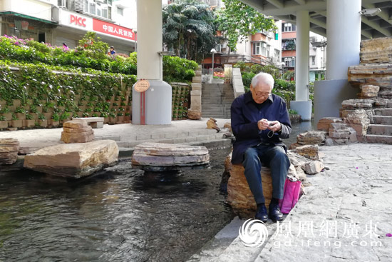 五年过去了,总带领走过的东濠涌清澈见底,流水潺潺,东濠涌的治理范围已经从1.89公里扩展到了4.51公里,这里成了附近居民的休闲好去处。81岁的蔡伯是附近的居民,他每天都会带着收音机到东濠涌附近坐上几个小时。“以前排污都排在河涌里,现在有排污管,水就清,还有了野生的鱼。”蔡伯说。