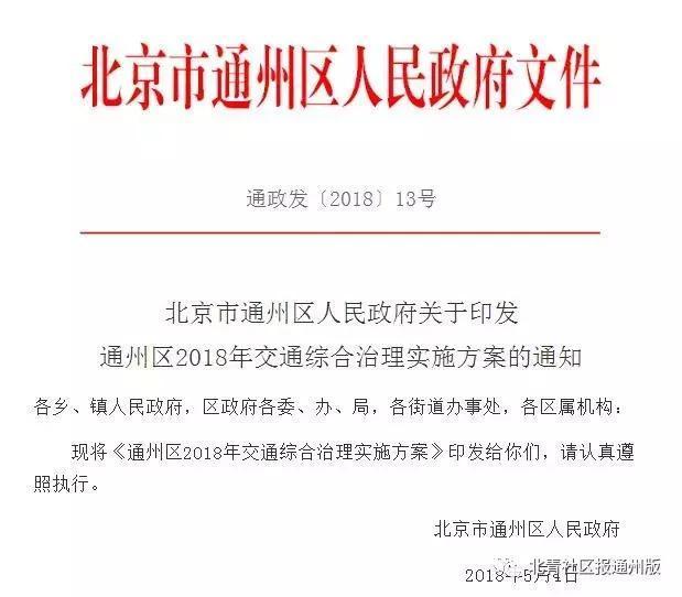 ÖØ°õ£¡Í¨ÖÝÇø·¢²¼¡¶Í¨ÖÝÇø2018Ä꽻ͨ×ÛºÏÖÎÀíʵʩ·½°¸¡·£¡ÆäÖУ¬µÚ24Ïî·½°¸Ã÷È·Ö¸³ö£¬½«ÊÊÊ±ÍÆ½øÏÞÐдëÊ©£¬²ÎÕÕÎå»·ÄÚÏÞÐÐÕý²ß£¬ÔÚÇøÄÚ²¿·ÖµÀ·²ÉÈ¡½»Í¨¹ÜÀíÏÞÐдëÊ©¡£Íê³ÉʱÏÞΪ2018Äê6Ô£¡