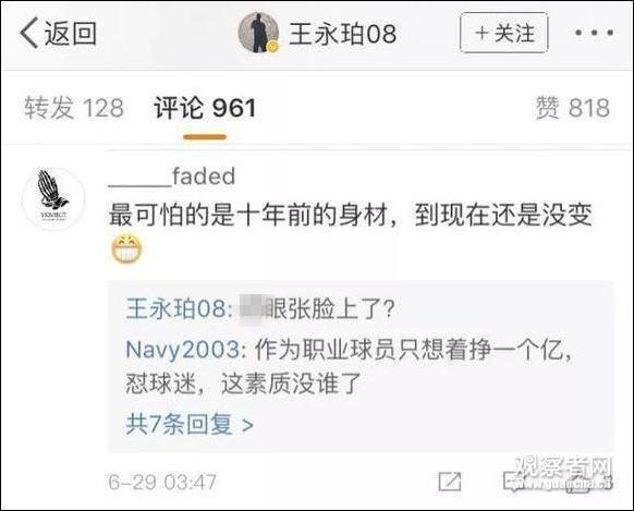 但球迷们似乎很不买账。 王永珀被曝在评论区“骂网友”;而王大雷因“纹身越爬越满”,被网友无情批评:“身材再好,纹身再多,脑子不行,还是废物。”