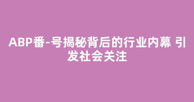大家好,今天我来和大家聊一聊关于ABP番-号揭秘背后的行业内幕 引发社会关注的问题。在接下来的内容中,我会将我所了解的信息进行归纳整理,并与大家分享,让我们一起来看看吧。