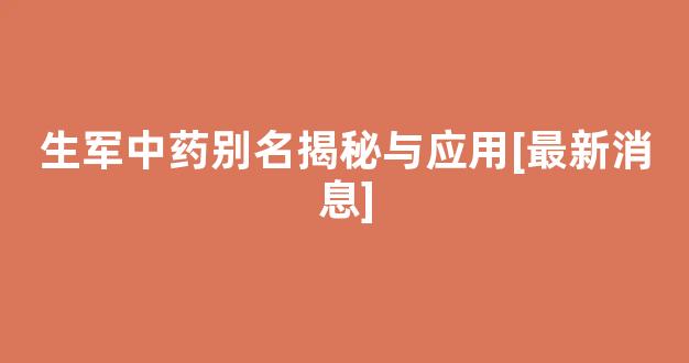 大家好,今天我来和大家聊一聊关于生军中药别名揭秘与应用[最新消息]的问题。在接下来的内容中,我会将我所了解的信息进行归纳整理,并与大家分享,让我们一起来看看吧。