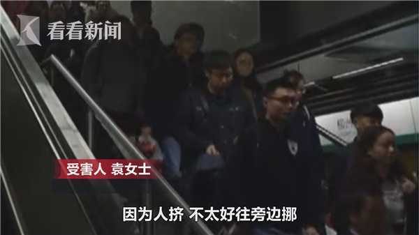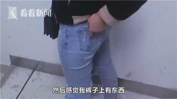 受害人袁女士:我准备再往旁边走一点的,人多不太好动,一两分钟吧,这个男的自己钻到旁边去了。不过我感觉到裤子上有东西,就是湿了,手一摸就是那种东西。