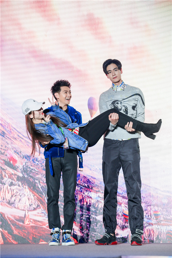 “时空商队”还玩起了互动游戏“你画我猜”,更与台下观众联动。熊梓淇、林志颖接连上演花样公主抱,场面嗨翻天。胡一天秀画功萌翻众人,遇粉丝表白献上暖心拥抱,魅力值满满。白敬亭现场也获粉丝深情表白,小白羞涩腼腆令大哥余文乐十分着急,于是调皮的余老师搂住小白向粉丝靠近,林志颖也随之加入,两位大哥化身“表白神助攻”,场面欢乐不断。
