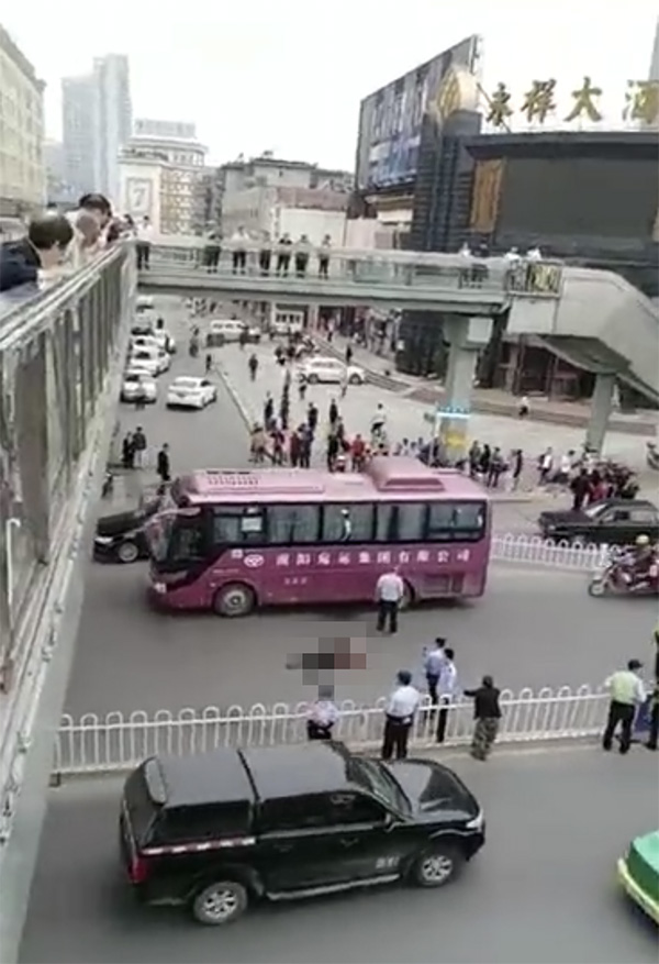 当地目击者提供给澎湃新闻(www.thepaper.cn)的一段视频显示,事发于襄阳站附近。一人从桥上跳下,趴在地上,有民警在现场调查。