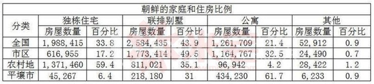 朝鲜有590万户家庭,平均每户4人,65%家庭有两居室,面积在50平米到75平米之间,这听上去还可以。yxX联谊新闻网-传递不一样的新闻资讯