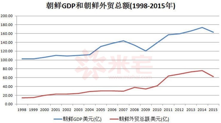 2017年朝鲜的GDP不到2000亿人民币,仅是中国百强县的水平。▼yxX联谊新闻网-传递不一样的新闻资讯