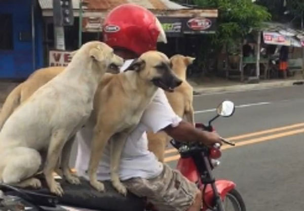 据英国《每日邮报》11月14日报道,11月7日下午有路人拍下了一段令人捧腹的视频,一位爱狗人士骑着摩托车载着三只爱犬,缓缓行驶在菲律宾八打雁省的马路上。