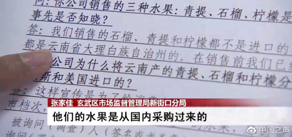 经过市场监管部门调查核实,这些水果并非进口,而是历产的。南京市玄武区市场监管局新街口分局张家佳告诉记者:“当时我局在超市发现这个来源不明的水果的时候,立即要求下架处理,并且供货商也承认,他们的水果是历内采购过来的,说他们的水果来自云南。我们以涉嫌虚假宣传进行立案调查。”