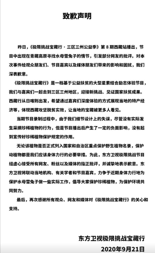 《极限挑战宝藏行》本来是属于一档公益节目,是为了宣传西藏的扶贫攻坚行动,然而节目中却出现了破坏当地生态环境的现象,不但涉嫌违法,还违背了这档节目的初衷。