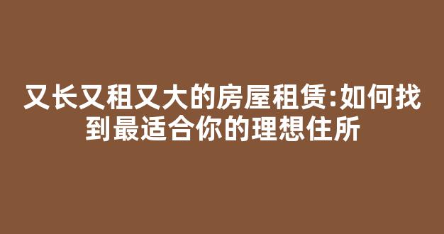 大家好,今天我来和大家聊一聊关于又长又租又大的房屋租赁:如何找到最适合你的理想住所的问题。在接下来的内容中,我会将我所了解的信息进行归纳整理,并与大家分享,让我们一起来看看吧。