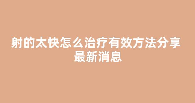 大家好,今天我来和大家聊一聊关于射的太快怎么治疗有效方法分享 最新消息的问题。在接下来的内容中,我会将我所了解的信息进行归纳整理,并与大家分享,让我们一起来看看吧。