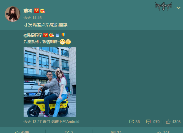 而就在近日,痞幼又在微博里自黑了。就在近日,痞幼一如既往地在微博里更新自己的动态,而这一回痞幼又开始吐槽自己胖了。像是以开玩笑地口气说自己差点将车的车胎给座爆,自黑体重标,然后紧接着又开始说自己要开启减肥计划了,不得不说痞幼真是一个耿直的网红。