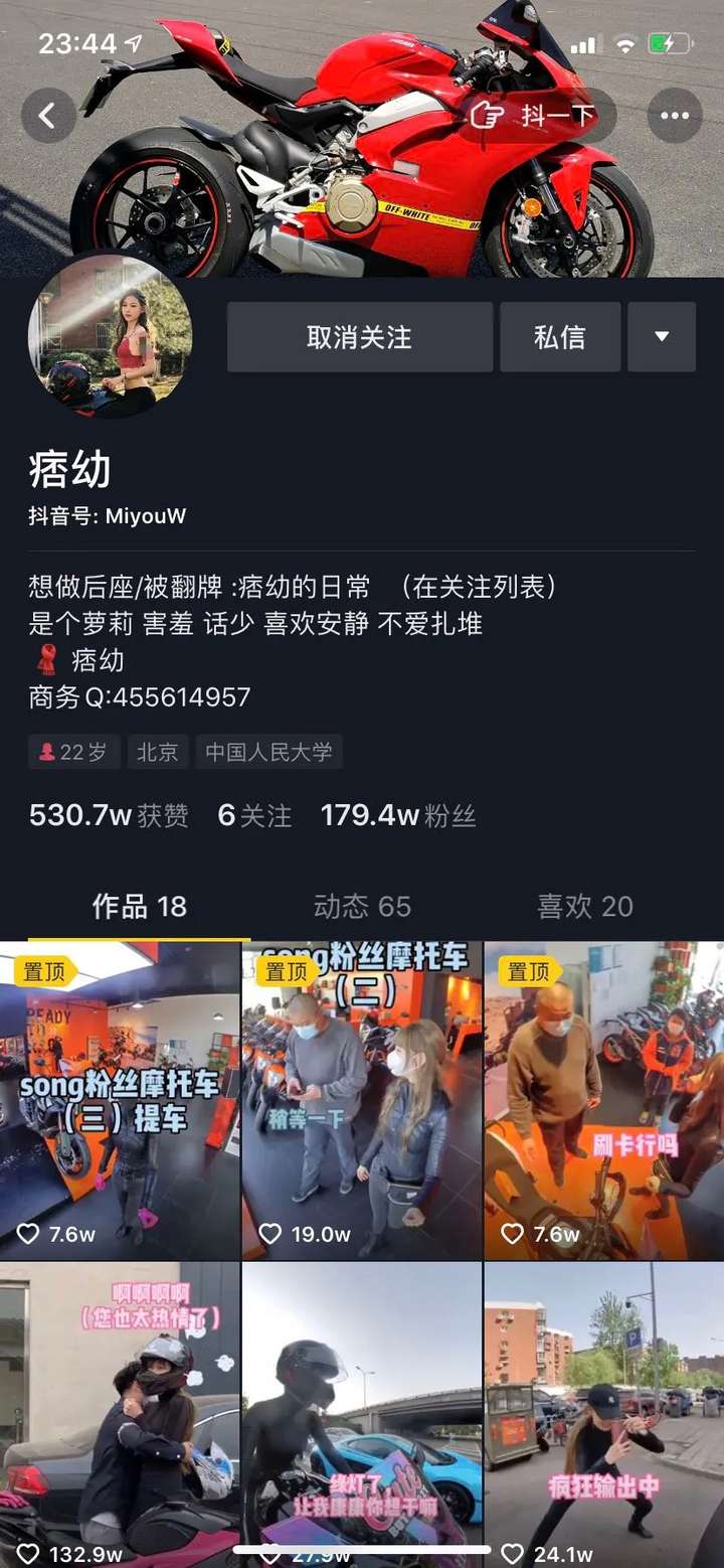 网红火起来,无非是话题性和争议性。在小编的朋友圈里,就有一个很火的女孩。她的名字叫“痞幼”。她是某短视频平台的网红,也是一个非常受欢迎身材非常劲爆的摩托车女郎。