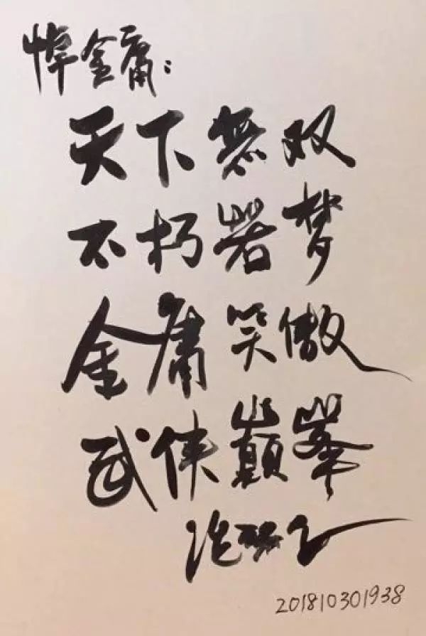 现在听到金庸逝世的消息,温瑞安手书了“独孤不朽,令狐无敌“以表悼念,接着又写下了“天下无双,不朽若梦,金庸笑傲,武侠巅峰”以表哀思。LgA联谊新闻网-传递不一样的新闻资讯