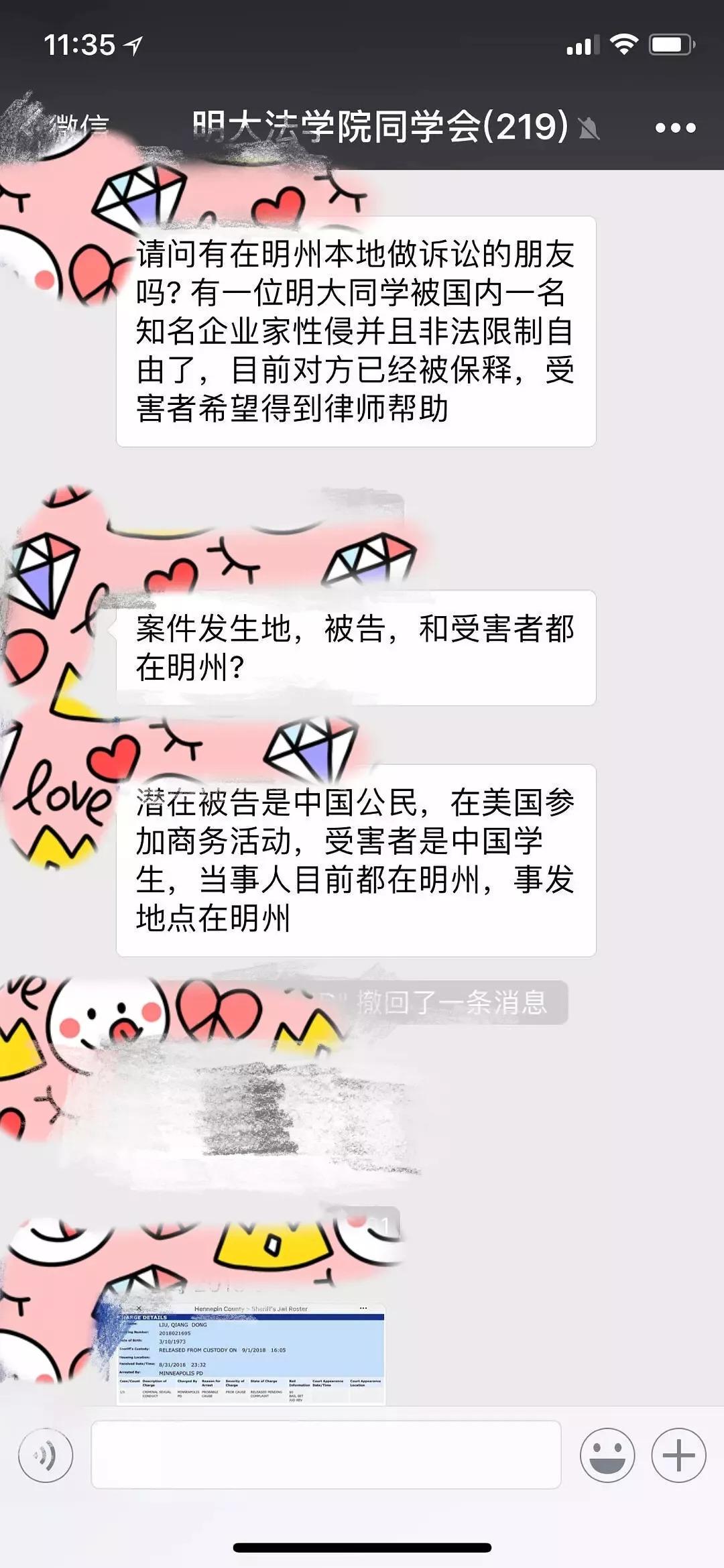 并且明大的校友群里,受害人的同学已经在寻找法律援助。