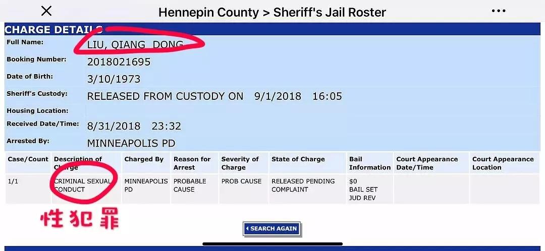 事情的起源是昨天,有人扒出了刘强东在美国的被捕信息。