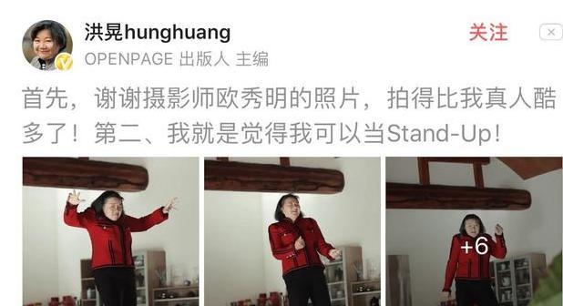 洪晃在社交媒体上晒出一组近照,照片中的她身穿红色上衣,下身是黑色的紧身裤,对着镜头摆出搞怪姿势,十分“放荡不羁”。同时也可以看出,现在的洪晃身材发福,头发也开始变得花白,已经出现了一点老态。