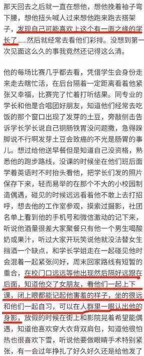同时又唱歌又能跳舞,所以说大家都很喜爱。关键是在这里面,对他有很多的赞美,说他对于女生都是非常的友善,很有男子汉的气概。同时也是非常温柔,笑起来非常的可爱,因此就暗恋上了他。这样的一个文章写的也是非常的像真的,在网友看完之后觉得代入感真的是特别在强。