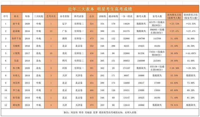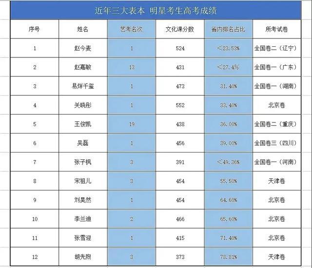 下面我们来看一下历届三大表本明星考生的高考成绩