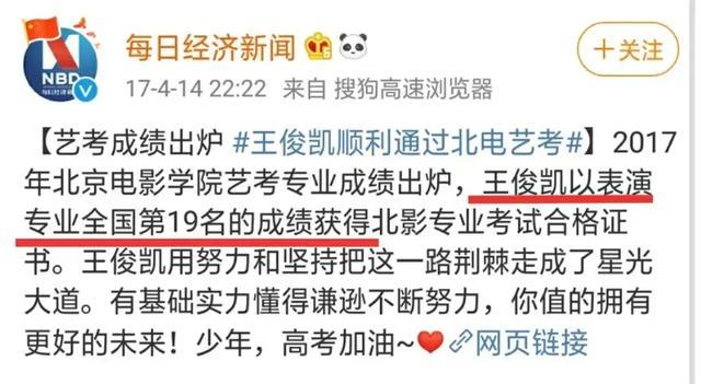 王俊凯高考文化课裸分438分,超出当年的普通文科二本线2分,超出重庆市艺考本科分数线98分,作为艺术生是非常亮眼的成绩了。