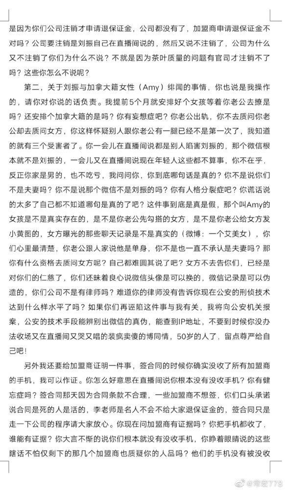 事实上,李菁菁的前助理常宏也是受骗者之一,她曾在去年发布声明称,她是李菁菁茶叶的全国代理也是她的助理,李菁菁和刘振会要求她将货款打入刘振的私人银行卡,而不是阔司的银行卡。