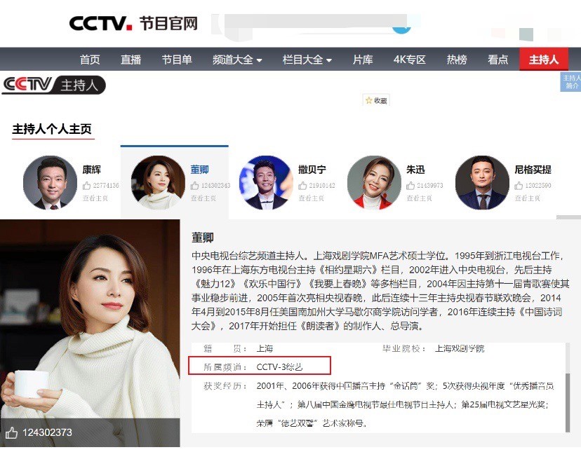 更加紧张的是,关上CCTV官网页面,在掌管人那一栏里,董卿排名第二仅仅次于康辉。因而可知她在央视的份量极重,并无被解雇,想必今后也不会有雷同变乱产生。