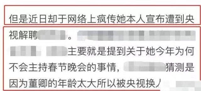 不过不日却于采集上疯传她自己公布遭到央视解聘的传言。仔细翻翻这些稀里糊涂的传言文章,其实紧张即是提到对于她今年为什么不会主持春节晚会的事变,所以就有展望是因为董卿的年数太大所以被央视换人。其实这些流言不问可知即是毫无按照的乱猜。董卿自己平时连寒暄网坐都不上,又何谈自己民间公布这些消息呢,并且如此大消息的事,如果是真的,董卿也必定会经过进程民间颁发申明的。