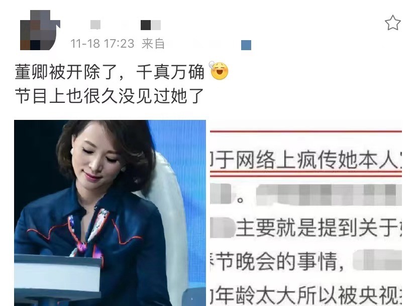跟着事变愈演愈烈,有明智的粉丝发声造谣,称此事其实不失实。11月17日是董卿的华诞,那时《朗诵者》官媒还晒照祝她华诞快乐,如果然的被解雇的话,想必官媒也不会收回这条博文吧。