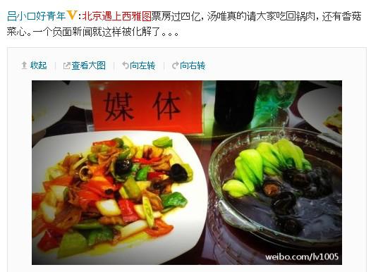 直到《北京赶上西雅图》片子票房超3亿的庆功宴上,一顿暖锅肉和香菇菜心完美地化解了这场危急。只是女神的文艺形象一去不复返了!