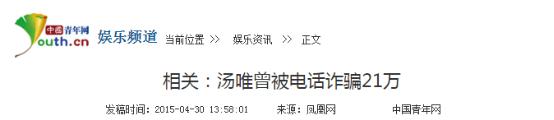 如许亲民的她,还被欺骗德律风骗走了21万,其实剧组的全数人都接到了欺骗团体的德律风,也只要汤女神被骗了!
